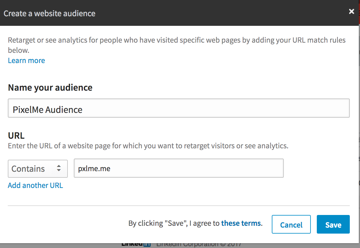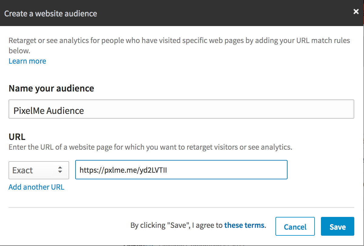 OR, you can select your entire PixelMe audience by setting the URL parameter to 'Contains' and 'pxlme.me'.